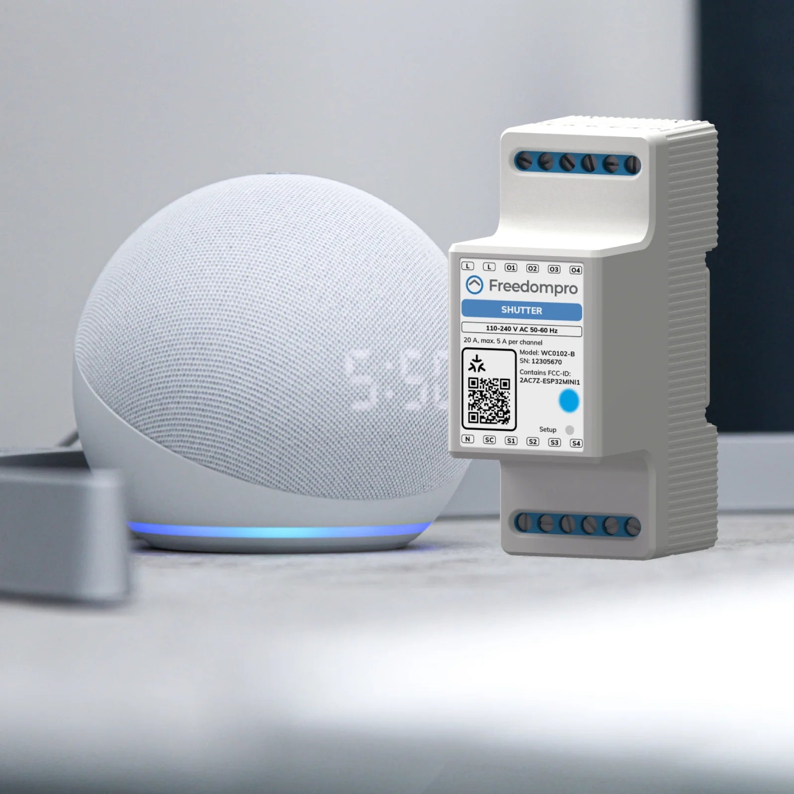 Einfach im Rollladenkasten installierbar, der Freedompro WC0102-B ist der ideale kompakte WLAN-Schalter für elektrische Rollläden. Zuverlässig, sicher und bereit für die Zukunft Ihres Smart Homes