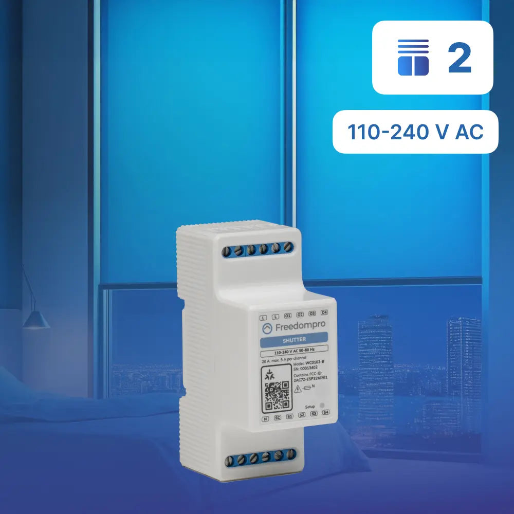 Freedompro WC0102-B ist ein WLAN-Schalter für die DIN-Schiene, das die Steuerung von zwei elektrischen Rollläden transformiert, automatisiert und smart macht. Dieses im Schaltschrank installierte WLAN-Modul mit Stromversorgung 110–240 V und 5 A pro Kanal ermöglicht Ihnen die Steuerung des Öffnens und Schließens von zwei elektrischen Rollläden direkt von Ihrem Smartphone aus, per Sprachbefehl oder über erweiterte Automatisierungen. Das steigert Komfort und Energieeffizienz.